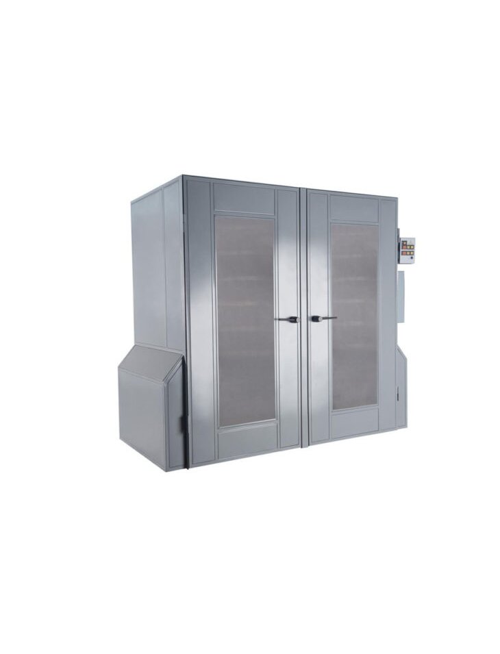 Шкаф окончательной расстойки «Поиск» обеспечивает равномерное распределение внутри шкафа окончательной расстойки «Поиск» подготовленной паровоздушной смеси заданной температуры и влажности (Т=30-60 С и влажностью до 95%). Регулирование температуры и влажности в шкафу осуществляется автоматически с пульта управления. Достаточно высокая относительная влажность воздуха в шкафах окончательной расстойки «Поиск» необходима для предотвращения образования на поверхности заготовки сухой пленки, приводящей при выпечке к появлению разрывов и трещин на поверхности готовых изделий. Прозрачная поликарбонатная панель позволяет контролировать процесс расстойки.На случай аварийного отключения, Шкаф окончательной расстойки «Поиск» снабжен силовым пультом управления.При окончательной расстойке момент достижения наивысшего объема тестовой заготовки должен совпадать с окончанием расстойки, при этом в тестовой заготовке восстанавливается клейковинный каркас, формируется структура изделия, поверхность становится гладкой, эластичной и газонепроницаемой. Время расстойки задается таймером на основном пульте управления.