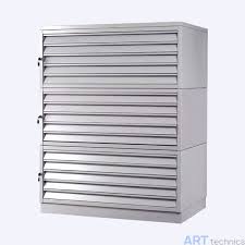 Шкафы-драйверы музейные горизонтального хранения - это специализированные системы хранения для больших и плоских экспонатов, таких как карты, рисунки, фотографии и текстиль. Они отличаются выдвижными ящиками (драйверами), которые обеспечивают горизонтальное размещение предметов, минимизируя повреждения и облегчая доступ к ним. Цель их использования - безопасное и компактное хранение, а также удобство каталогизации и доступа к ценным фондам. Данные шкафы выполнены на жестком алюминиевом каркасе, с алюминиевыми ящиками и композитными защитными панелями, тем самым существенно повысился уровень технических характеристик(например появилась возможность увеличить габариты и высоту ящиков). Допустимая нагрузка - 600 кг.