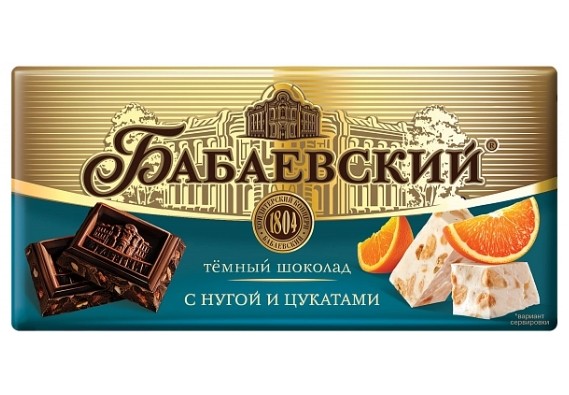 Шоколад Бабаевский темный с нугой и цукатами, изделие кондитерское