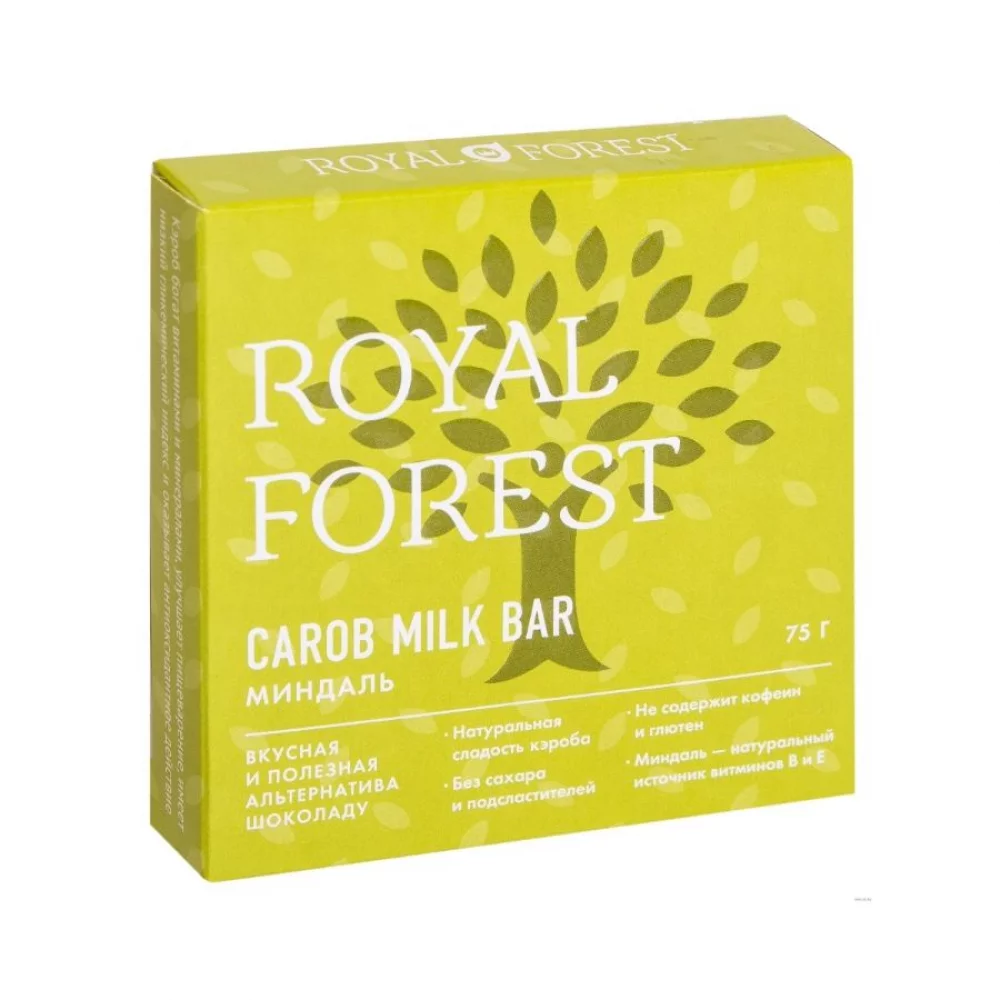 Подарите себе натуральное удовольствие и позаботьтесь о своем здоровье с шоколадом Royal Forest. Миндальный молочная шоколадка - выбор для всех, кто ценит вкус и здоровье. Окунитесь в мир натурального шоколада из кэроба, который радует и заботится о вашем здоровье.