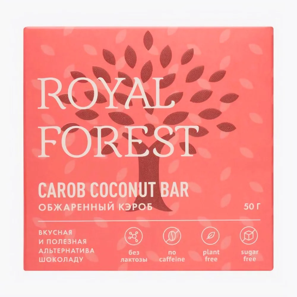 Состав шоколада из кэроба Royal Forest Carob Coconut Bar Обжаренный кэроб, 50 гр: Какао-масло, кэроб обжаренный, сухое кокосовое молоко. Может содержать следы орехов и пряностей. Содержит сахара природного происхождения.