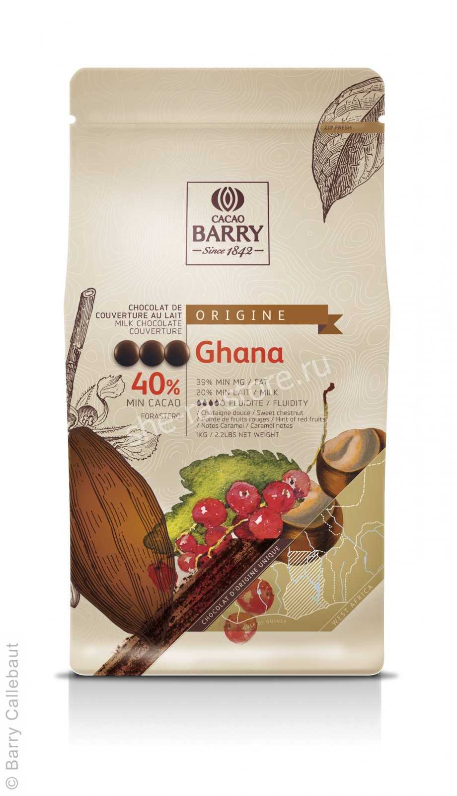 Этот молочный кувертюр родом из Ганы имеет великолепный вкус красных фруктов и каштанов, утопающий в ярких нотках какао и печенья.
