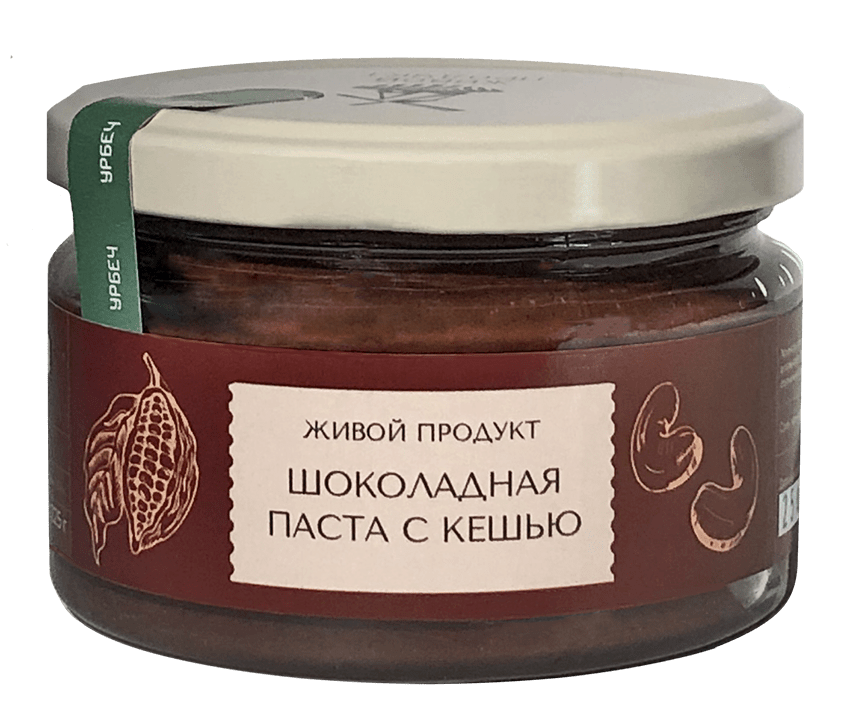 Нежнейшая шоколадно-ореховая паста. Микс какао-бобов, орехов кешью, сочной мякоти кокоса с добавлением хлопкового и какао масел, натурального подсластителя — сиропа топинамбура и семян ванили. В состав пасты входят только натуральные, тщательно отобранные ингредиенты. В чем польза шоколадной пасты? Какао бобы заметно улучшают состояние кожи и волос, избавляют от усталости, стимулитруют мыслительные процессы. Кешью обладают антисептическим, тонизирующим, антибактериальным и антимикробным свойствами, поэтому их употребляют при вирусных заболеваниях. Токофинол или витамин Е содержащийся в кешью и хлопковом масле способствует укреплению нервной системы.