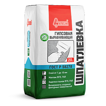 Шпатлевка гипсовая "Выравнивающая" применяется для выравнивания стен и потолков внутри помещений с нормальным уровнем влажности. Идеально подходит для монтажа перегородок из ПГП; заделки стыков ГКЛ, ГВЛ с использованием армирующей ленты; приклеивания ГКЛ, ГВЛ к ровным минеральным поверхностям; заделки повреждений и головок саморезов на поверхности ГКЛ, ГВЛ; заполнения стыков сборных бетонных элементов; склеивания и шпатлевания гипсовых элементов (лепнины); создания декоративных фактурных поверхностей. Смесь изготовлена на основе гипса с добавлением минеральных наполнителей и высококачественных модифицирующих добавок. Рекомендуемая толщина слоя - 1-10 мм. Расход смеси при слое 1 мм - 0,9 кг/м2. Температура воздуха, основания, материалов при работе - от + 10 до + 30 °С. Поставляется в мешках по 20кг.