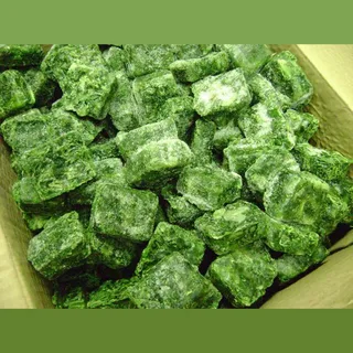 Шпинат замороженный продукт, полученный из свежих листьев шпината путём заморозки. Замороженный шпинат является источником витаминов и минералов, что делает его удобным для добавления зелени в блюда. Однако вкус и текстура замороженного шпината могут отличаться от свежего: некоторые люди считают, что он может быть немного более водянистым и менее хрустящим.