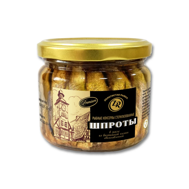 Шпроты в масле из балтийской кильки, Золотистая рыбка, ГОСТ, 175 г