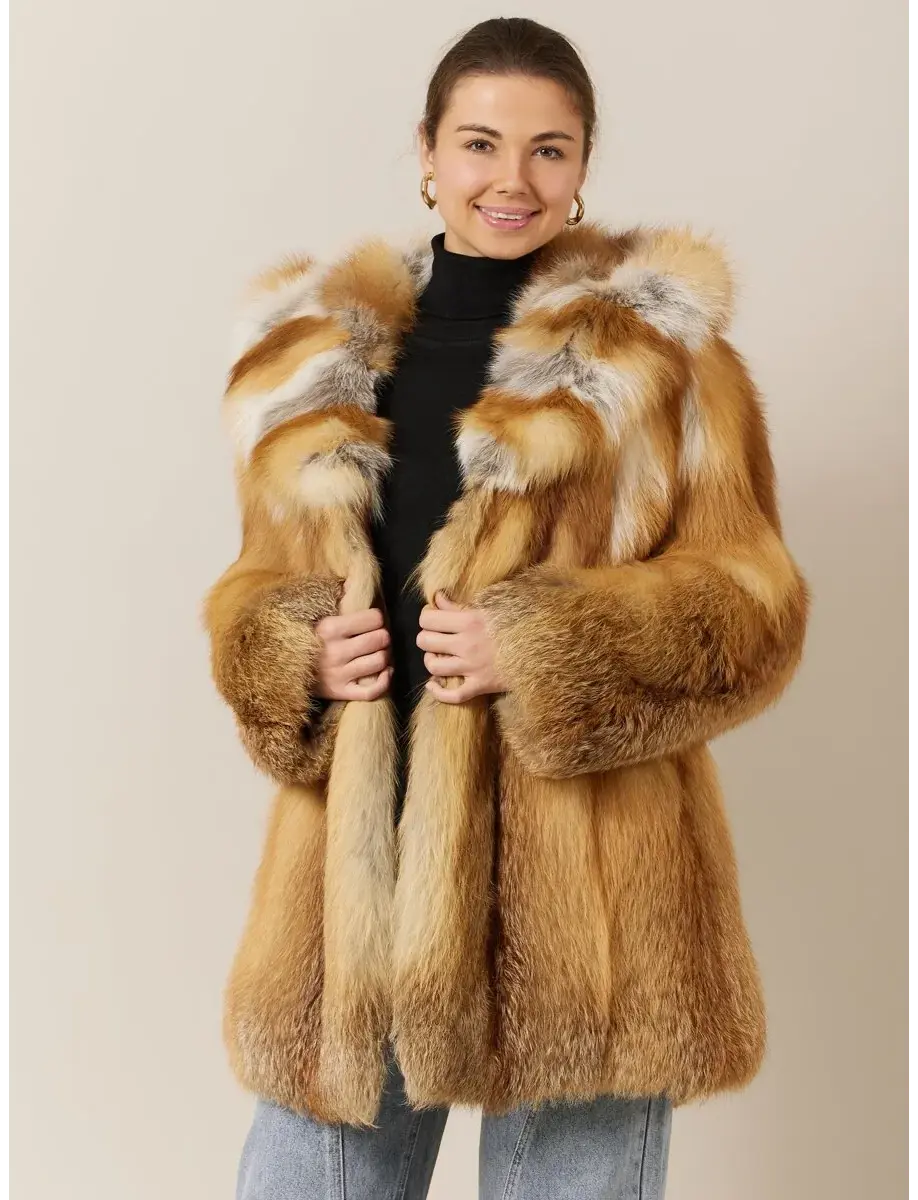Шуба из меха лисицы рыжей с капюшоном - это стильное, очень теплое и объемное изделие из натурального длинноворсового меха, служащее для защиты от сильных морозов (до 8 сезонов носки). Яркий рыжий окрас создает акцентный, роскошный образ, а капюшон обеспечивает дополнительную защиту головы и шеи, часто позволяя обходиться без головного убора. Длина полушубка 80см, длина рукава 66см, рукав втачной. Подборт обработан натуральной кожей. Рекомендуемый температурный режим изделия +5С-30С
