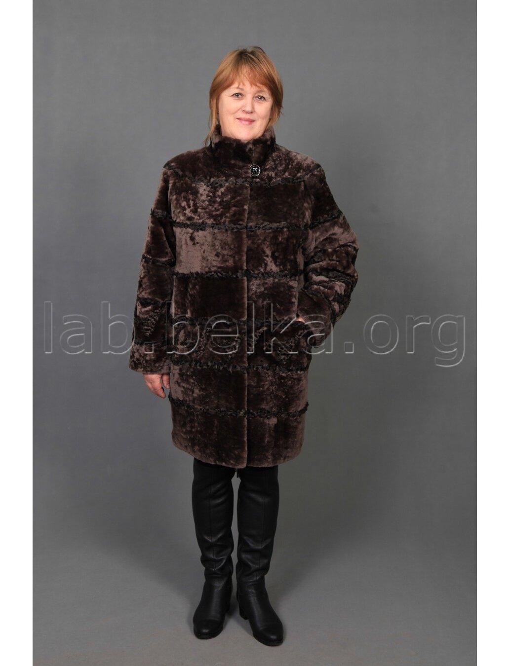 Шуба из овчины с отделкой из каракуля - это стильное комбинированное изделие, сочетающее прочную, теплую основу (овчина/мутон) и элегантные вставки из меха молодых ягнят (воротник, манжеты, капюшон). Она обеспечивает защиту от холода (до -20°C...-25°C), долговечна, практична и имеет изысканный вид благодаря характерному муаровому узору каракуля. Длина изделия - 90 см. Длина рукава - полный. Застежка - клипсы.