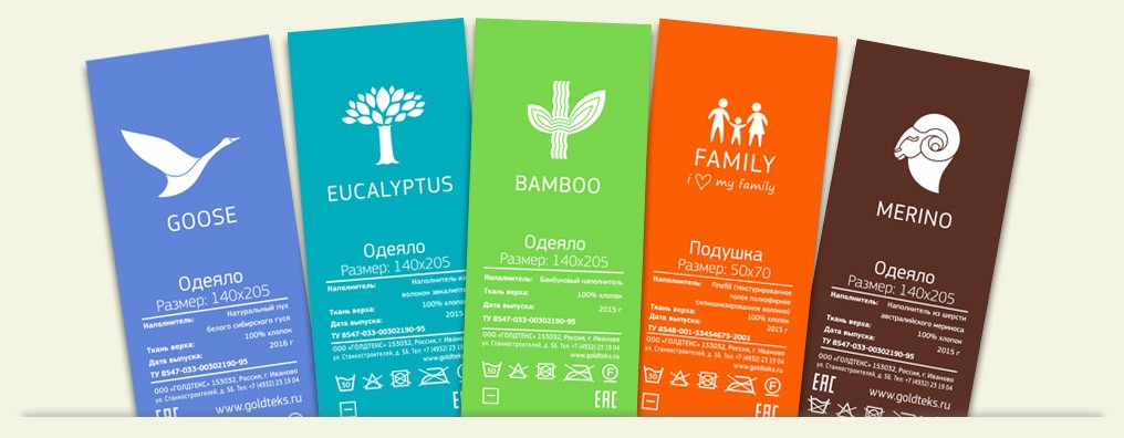 Швейная маркировка – термин обозначающий группу необходимых атрибутов для швейного производства. Основные виды этикеток: вшивные и пришивные этикетки, этикетки с размерами (размерники), этикетки на которых указан состав материала (составники), этикетки с информацией по уходу за швейными изделиями. В швейном производстве применяются так же бумажные самоклеящиеся ярлыки (самоклейки), бирки, лейблы, ленты с логотипом или любой другой информацией, шевроны и нашивки. Они могут быть выполнены на нейлоне, сатине, самоклеящейся бумаге или жаккардовым способом. Максимальная цветность для печатных этикеток – 4 краски.