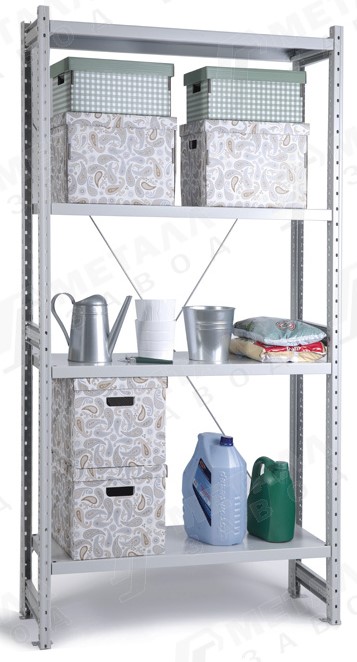 СКУ Стеллаж 1234 (2060) предназначен для установки внутри помещения для хранения грузов с ручной обработкой в магазинах, на складах, автосервисах и на промышленных предприятиях. СКУ стеллаж 1234 (2060) представляют собой универсальную стеллажную конструкцию из рам и полок с креплениями к стойкам на зацепах. Для обеспечения жесткости в продольном направлении по задней плоскости стеллажа стойки одной секции стянуты крестовиной. Стойка имеет сложный фигурный профиль, обеспечивающий прочность и надежность конструкции, а также позволяет присоединять неограниченное количество дополнительных секций (ДС) к основной, как слева, так и справа. Для устойчивости стеллажа предусмотрены подпятники с возможностью крепления к полу при помощи анкерных болтов. Все элементы стеллажа окрашены полимерной (порошковой) краской RAL 7035 светло-серого цвета.Стеллаж поставляется в разобранном виде, упакованный в стрейч-пленку и гофрокартон. Основные характеристики данной модели: высота, мм - 2060, ширина, мм - 1266, глубина, мм - 300, количество полок - 4, нагрузка на полку, кг - 200, нагрузка на стеллаж, кг - 1400 нагрузка на секцию, кг - 1500.