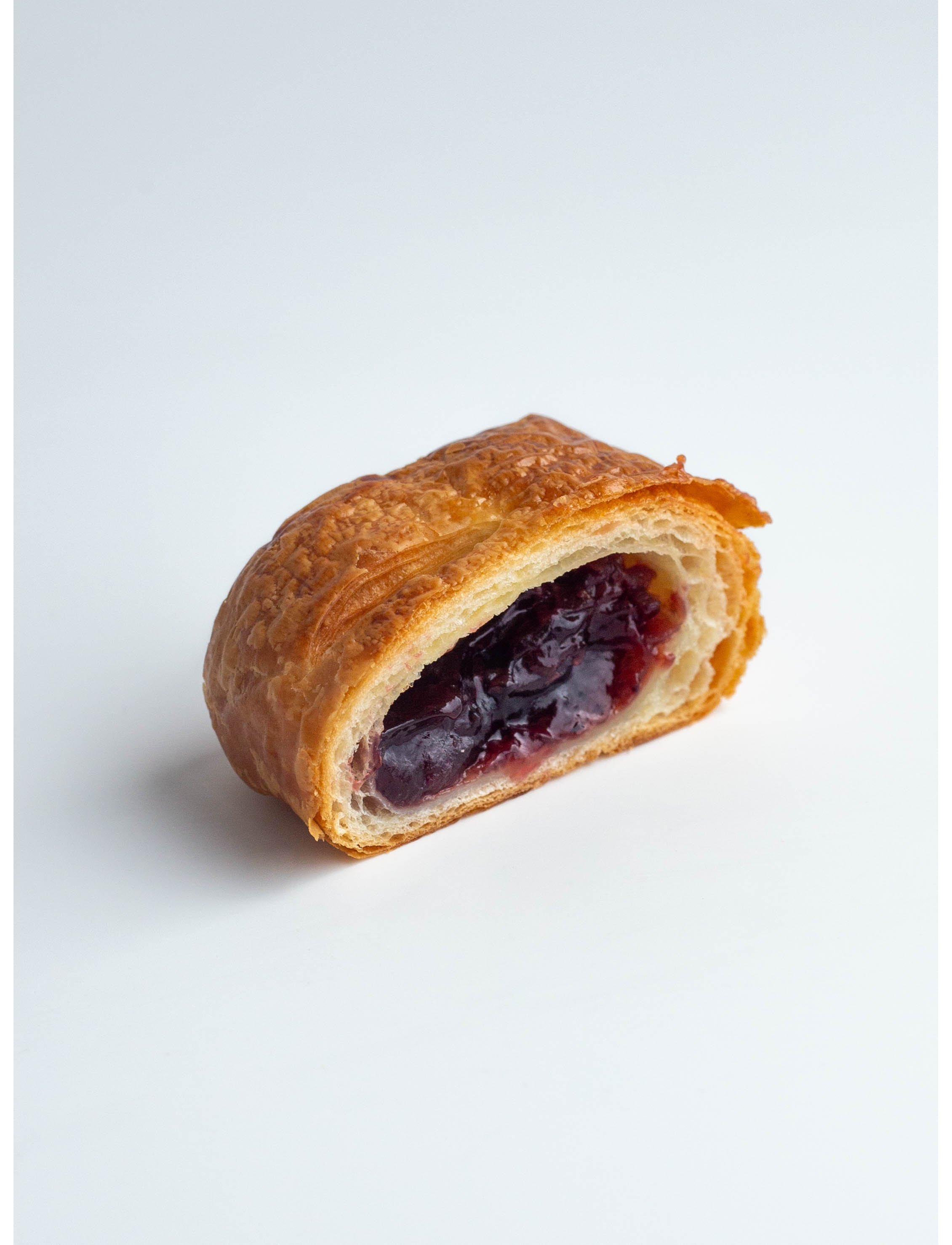 Изделие из слоеного теста с золотисто-румяной хрустящей корочкой, внутри которой скрывается сочная, ароматная начинка из насыщенных ягод черной смородины, источающая кисло-сладкий, слегка терпкий вкус с винными нотками