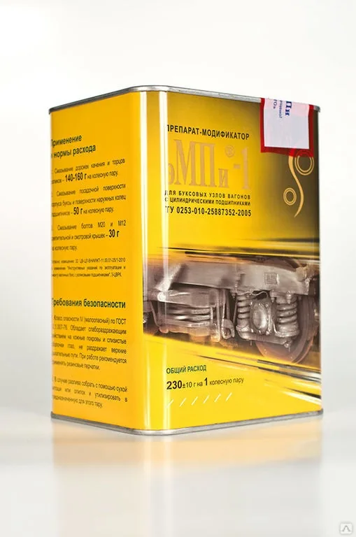 Препарат-модификатор эМПи®-1 для буксовых узлов вагонов с цилиндрическими подшипниками изготавливается в соответствии с ТУ 0253-010-25887352-2005.