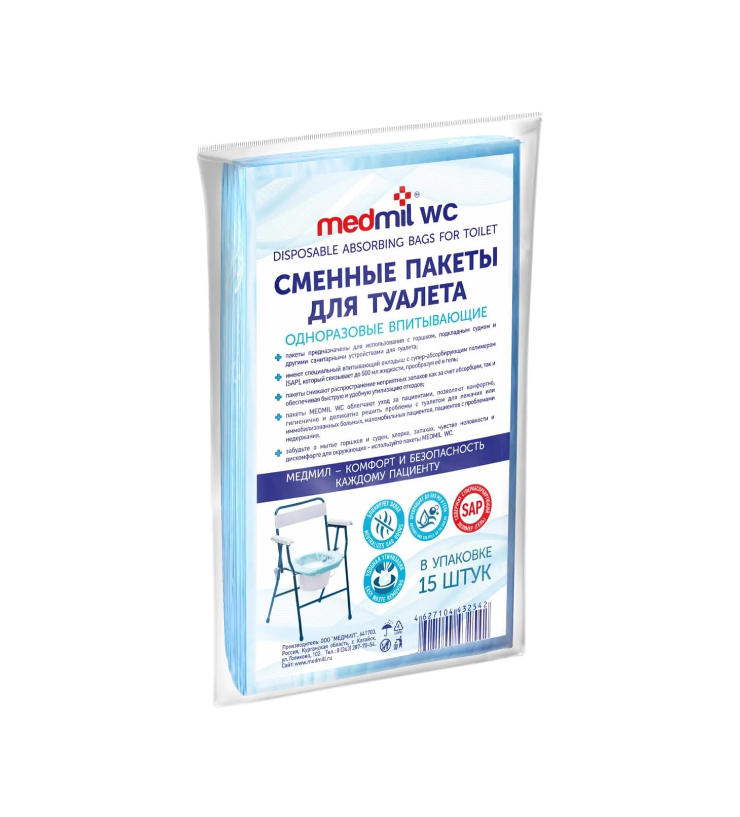 Сменные пакеты для туалета - это одноразовые гигиенические мешки со специальной впитывающей подушечкой, которые используются как вкладыш в кресла-туалеты, горшки и подкладные судна для лежачих или маломобильных людей, превращая жидкость в гель, устраняя запахи и упрощая уход, так как отпадают необходимость мыть горшки и судна. Они обеспечивают гигиеничность, комфорт и деликатность при уходе за пациентами, а также удобны для поездок и использования в дачных туалетах. Пакеты с вкладышами 15 штук для удобства сложены в блоки по 5 штук. Конструкция - объемный прочный пакет-майка матовый, многослойный блок-вкладыш с гелеобразующим суперабсорбентом. Упаковка - пакет с донной складкой ПВД (LDPE) 15 шт., вложенная цветная этикетка.