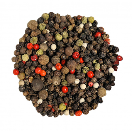 Смесь пять перцев - это универсальная приправа, подходящая для множество блюд: супов, салатов, мясных блюд, разнообразных гарниров, и напитков. Смесь из пяти перцев включает в себя сбалансированный состав белого, розового, душистого, зеленого и черного перца горошком. Приправа эта стала популярной благодаря правильному сочетанию вкусов всех перцев вместе, так как каждый из них приносит свою ноту аромата: душистые оттенки ямайского перца, пикантность зеленого, экзотика бразильского, пряные ноты белого и жгучесть черного создают особую гармонию вкуса. Чтобы получить необычайно ароматный вкус ваших блюд лучше всего молоть перцы сразу перец подачей. Также смесь пять перцев непременно украсит ваши любые кулинарные шедевры.