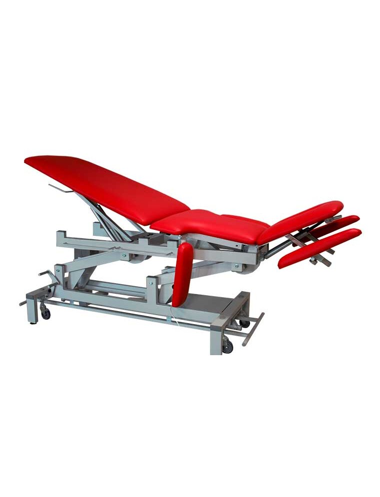 СМТ "Кинезо Эксперт-7" - это профессиональный 7-секционный стол с электроприводом, предназначенный для реабилитации, Бобат-терапии, мануальной терапии и кинезотерапии. Он обеспечивает точную настройку положения пациента для восстановления двигательной активности при травмах и болезнях ЦНС. 7-секционная конструкция позволяет изгибать ложе под нужды пациента, в том числе имеет функцию Pivot (изгиб для мобилизации позвоночника). Стол оснащен 2 электромоторами для плавной регулировки высоты и углов наклона секций, управление осуществляется рамным переключателем с любой стороны. В головной секции предусмотрено отверстие для лица, имеются колеса для транспортировки. В головном конце и средней части есть дополнительные подлокотники. Головные подлокотники опускаются вниз, а грудные вращаются вниз на оси.