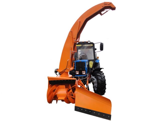В комплекте: Снегоуборщик СУ 21 ОМ, навеска универсальная НУ 2 (передняя, с гидровыходами), передний ВОМ и раскладывающаяся погрузочная труба.