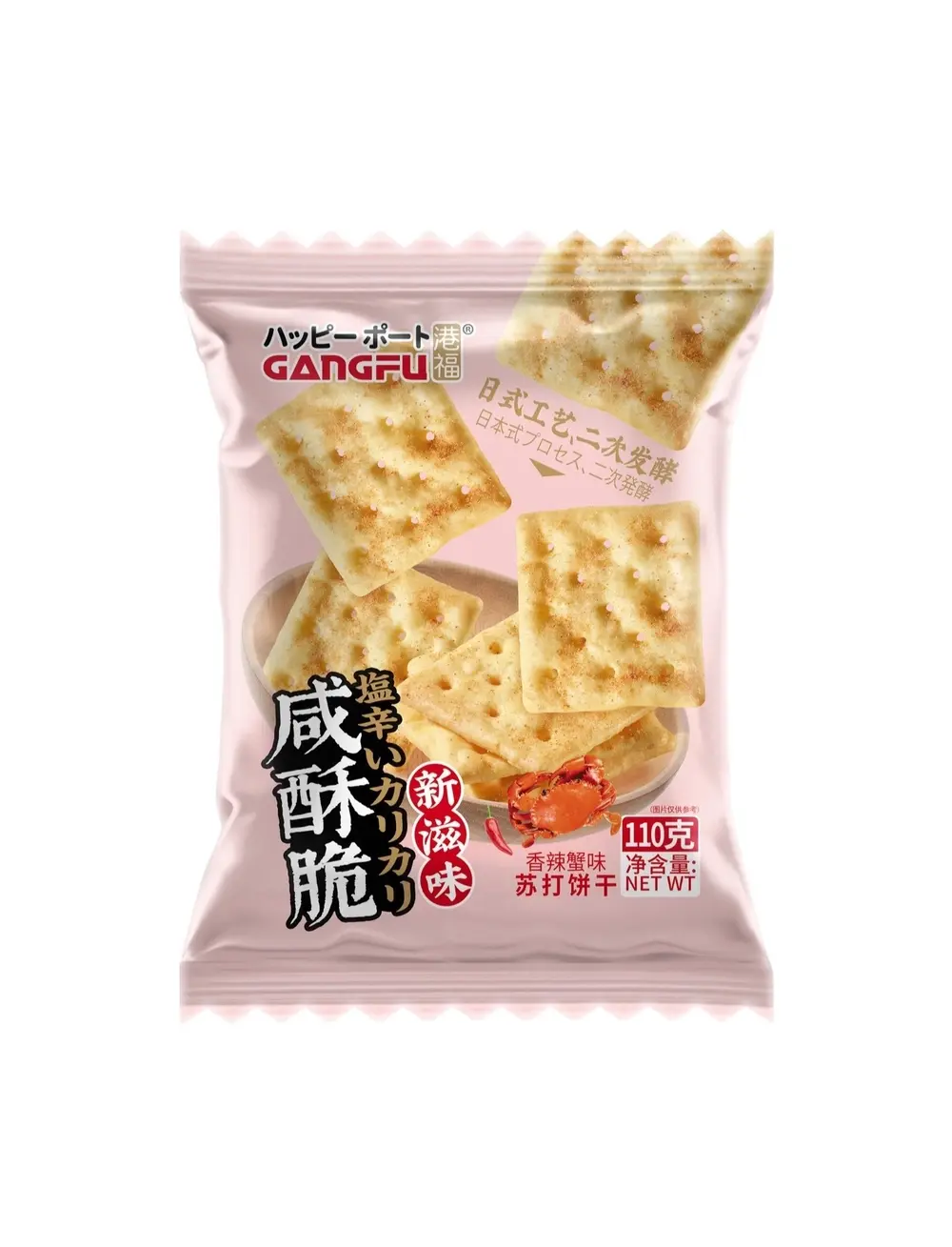 Хрустящие соленые крекеры Gangfu со вкусом острого краба - идеальный выбор для тех, кто ценит изысканные и пикантные азиатские вкусы. Эти хрустящие крекеры обладают ярким и острым вкусом краба, который покорит гурманов и любителей острого. Они являются отличной альтернативой чипсам, предлагая уникальный вкусовой опыт. Упакованы в удобную мягкую упаковку, они легко привлекают внимание покупателей на полках магазинов.