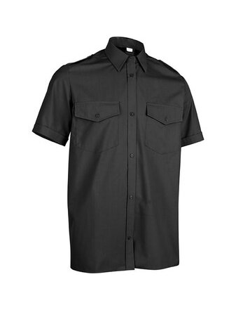 Сорочка охранника черная короткий рукав рекомендуется для сотрудников организаций, занимающихся охранной деятельностью.Рубашка с центральной застежкой на пуговицы, нагрудными накладными карманами с фигуными клапанами на пуговицах. Воротник отложной на отрезной стойке. Погоны с фиксацией на пуговицу.ГОСТ 19867-93