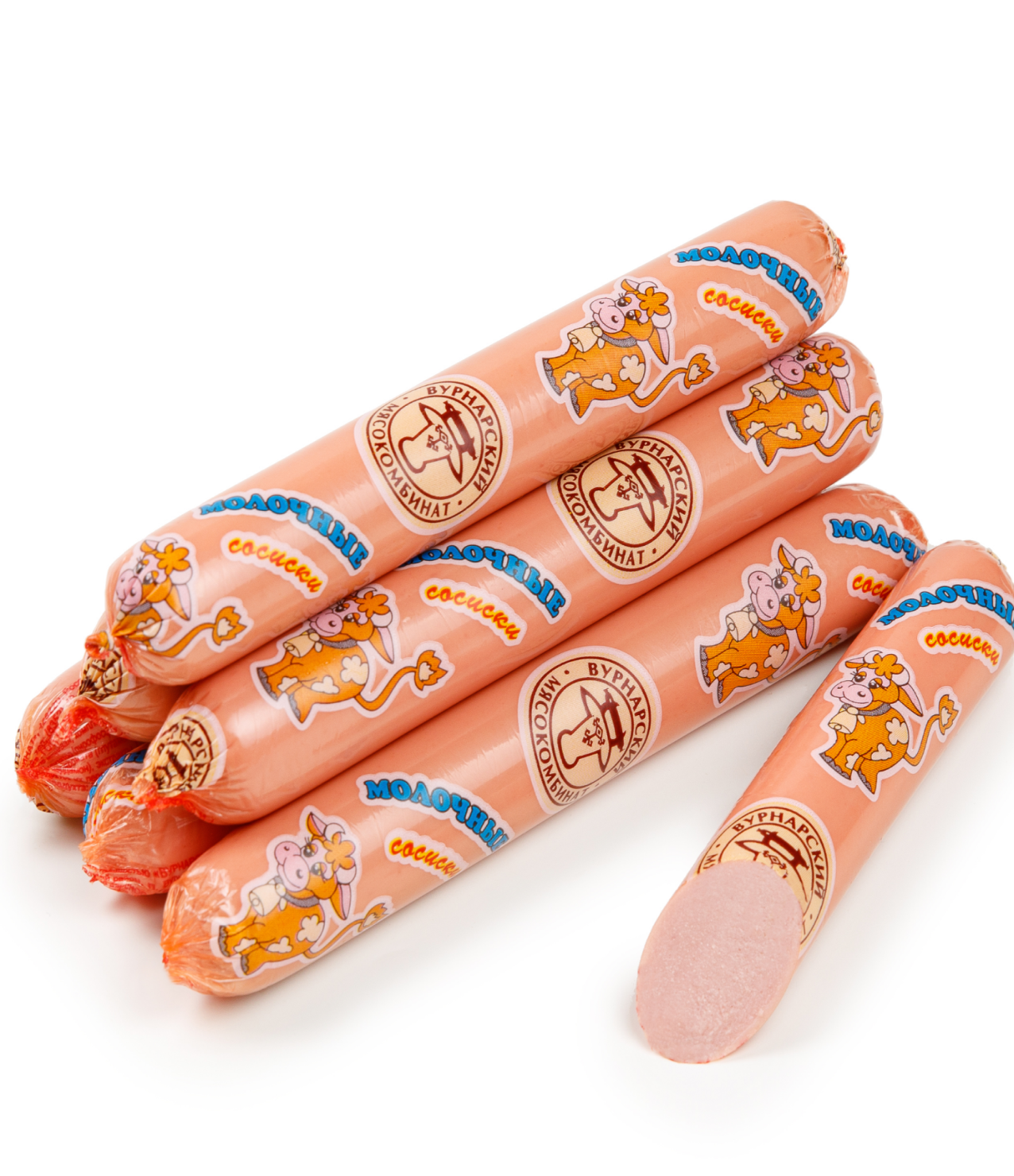 Сосиски Молочные ГОСТ 1 кг нежные сосиски, изготовленные из свинины и говядины по классической рецептуре
