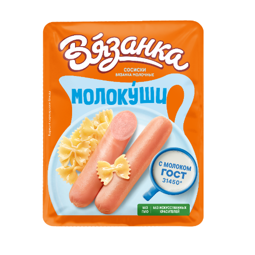 Сосиски с двойной порцией молока, насыщенным мясным вкусом, сочной структурой и нежным ароматом копчения.