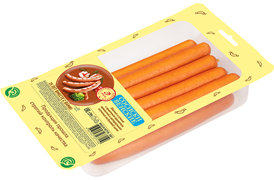 Сосиски Венские - это популярный продукт из отборной свинины, с добавлением говядины, куриного филе, соли и щепотки пряностей. Благодаря оболочке, проницаемой для натурального копчения, имеют румяный, золотистый цвет. Сосиски мясные, нежной консистенции, с насыщенным, мясным вкусом и ароматом. Представлены в упаковке 350 г.