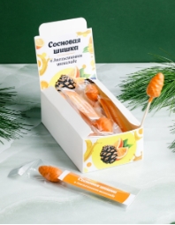 Сосновая шишка на палочке в Апельсиновом шоколаде / шоу-бокс / 187 гр /15 шт / Солнечная Сибирь
