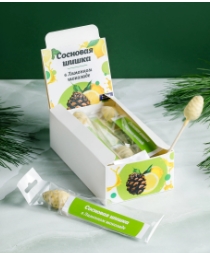 Сосновая шишка на палочке в Лимонном шоколаде / шоу-бокс / 187 гр / 15 шт / Солнечная Сибирь