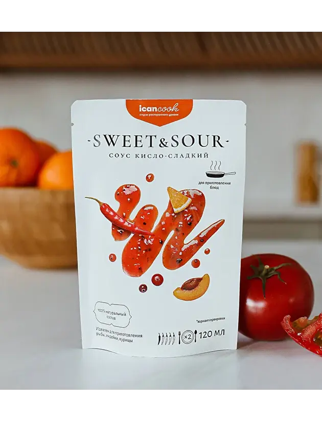 Кисло-сладкий соус icancook создан только из натуральных ингредиентов — сладость достигается за счет использования спелых абрикосов и томатов без использования рафинированного сахара, а кислинка получается благодаря апельсиновому соку, при этом идеально сбалансированная кисло-сладость придает готовому блюду особенный насыщенный вкус.
