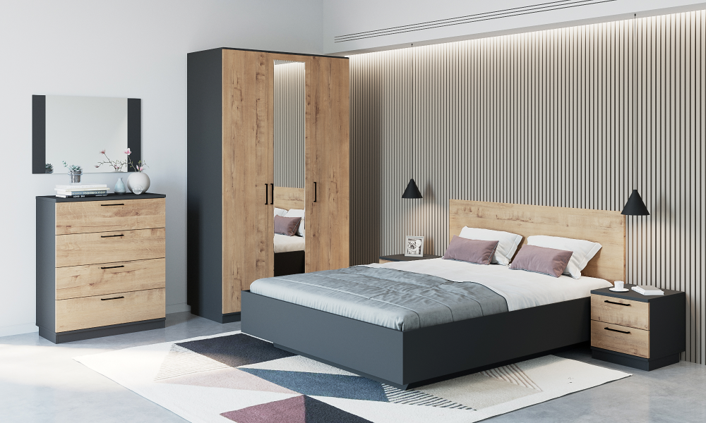 Спальня Серый тёмный/Бунратти