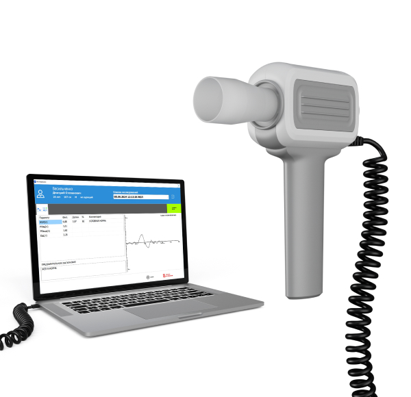 Спирограф СМП-02-"Р-Д"/2 представляет собой датчик спирографа ультразвукового типа, подключаемый к персональному компьютеру через USB. Просмотр и архивирование производится на компьютере. Работа спирографа обеспечивается с программным модулем регистрации и архивации результатов спирометрии "Spiro PC2". Спирограф используется в отделениях функциональной диагностики, оздоровительных центрах, медицинских службах предприятий (проведение медосмотров), в спортивной, авиационно-космической медицине для контроля эффективности лечебных и реабилитационных мероприятий в пульмонологии, мониторинга при астме, для врачебно-трудовой экспертизы. Габаритные размеры - 60*85*40 мм ±5% (без мундштука). Вес - 0,1 кг ±10% (датчик спирографа без мундштука и кабеля).