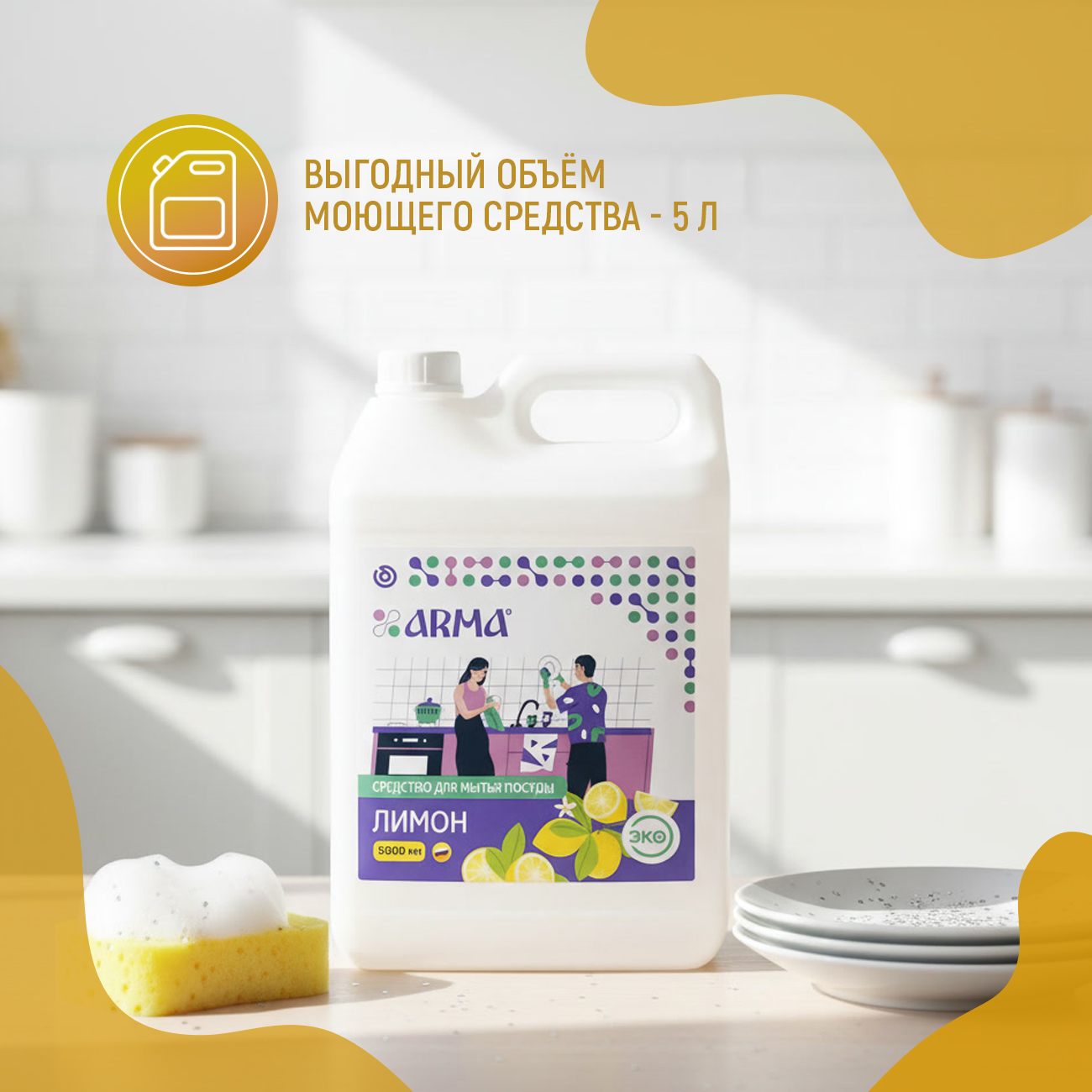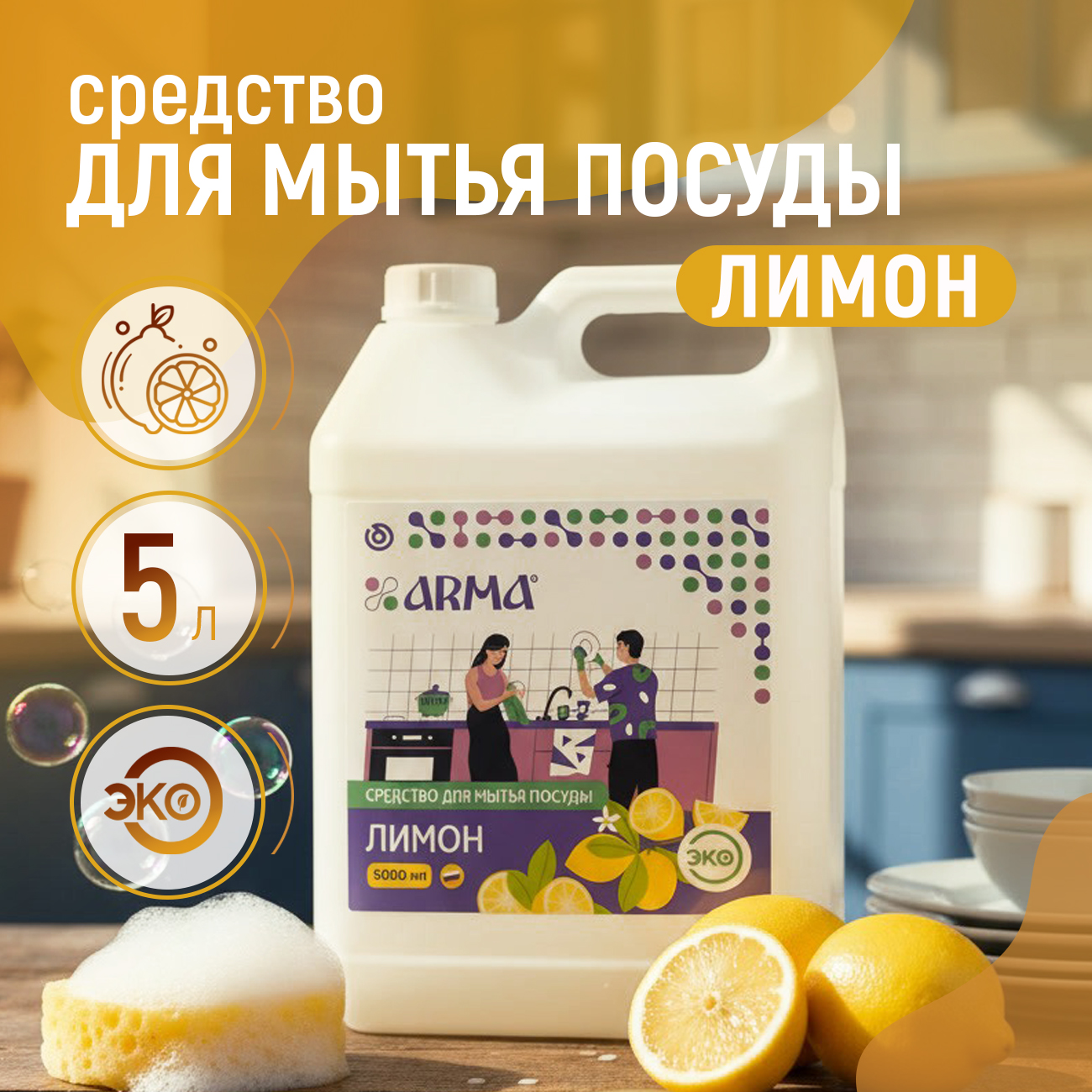 Средство АРМА для мытья посуды лимон, 5 л