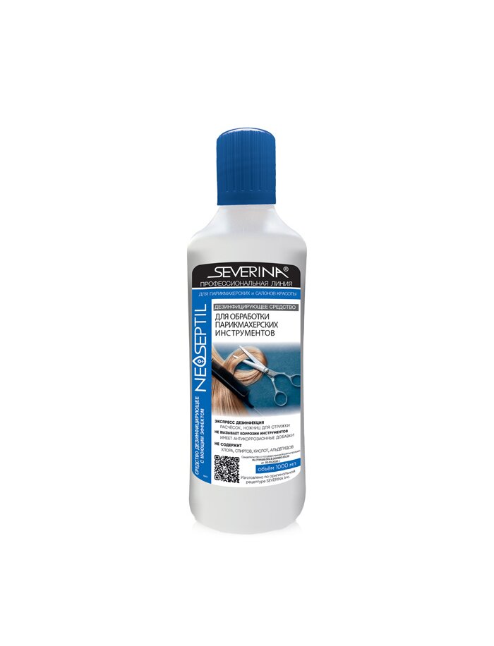 Средство для дезинфекции парикмахерских инструментов NEOSEPTIL предназначено для дезинфекции расчёсок и щёток из различных материалов, ножниц для стрижки волос, кистей для удаления остриженных волос с шеи и лица клиента по режиму, применяемому при грибковых заболеваниях, в виде рабочего раствора в концентрации 2%; съёмных ножей машинок для стрижки волос и электрических бритв по режиму, применяемому при вирусных гепатитах в виде рабочего раствора в концентрации 6%. В состав входят активные компоненты - четвертичные аммониевые соединения, а также функциональные добавки, ингибиторы коррозии. Средство выпускается во флаконах, объемом - 1000 мл.