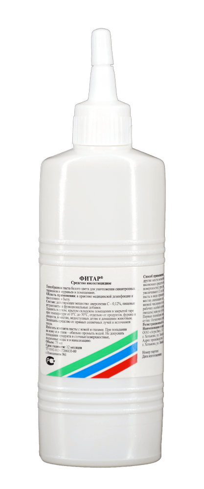 Фитар обладает острым и остаточным действием в отношении тараканов (около 2-х мес.) и рабочих особей различных видов муравьев (более 1-го мес.). Уничтожая тараканов и муравьев не вызывает привыкания, т. е. отсутствует резистентность.