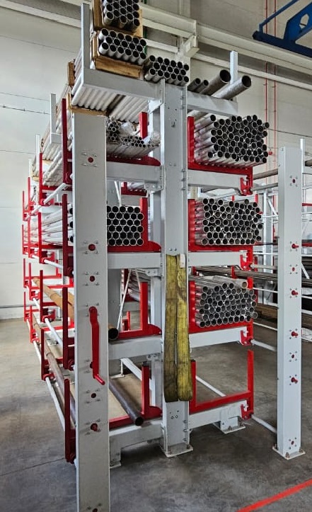 Стеллаж консольный с выдвижными полками предназначен для компактного хранения длинномерных грузов длинной до 6 метров, грузоподъемность яруса