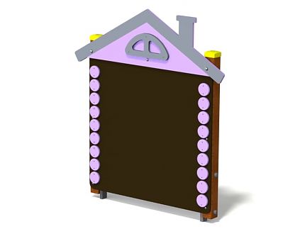 Стенка для рисования ДОМИК - это развивающее игровое оборудование для детей, представляющее собой панель в форме домика, которая используется как поле для творчества: на ней рисуют мелом или выкладывают мозаику, что развивает моторику, фантазию и социальные навыки, украшая интерьер и скрывая дефекты стен. Предназначено для использования детьми от 2 лет. Оборудование выполнено в виде стенки, установленной на несущих стойках. Размеры: 1462*120*1638 мм.
