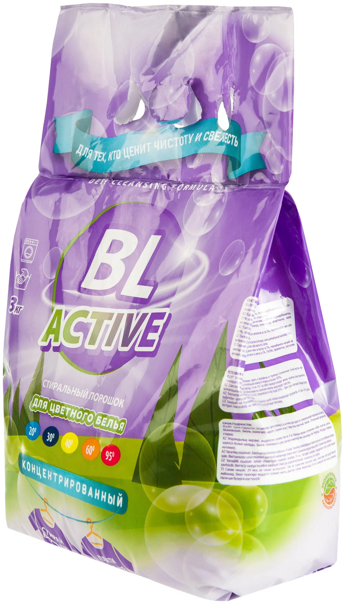 Стиральный порошок BL "Цветное бельё автомат" 3 кг концентрированный, гипоаллергенный порошок для стирки цветного белья в автоматической стиральной машине. Не содержит фосфатов и фосфонатов;легко вымывается из ткани при полоскании;предназначен для стирки изделий из хлопчатобумажных, льняных, синтетических тканей, а также для тканей из смешанных волокон.
