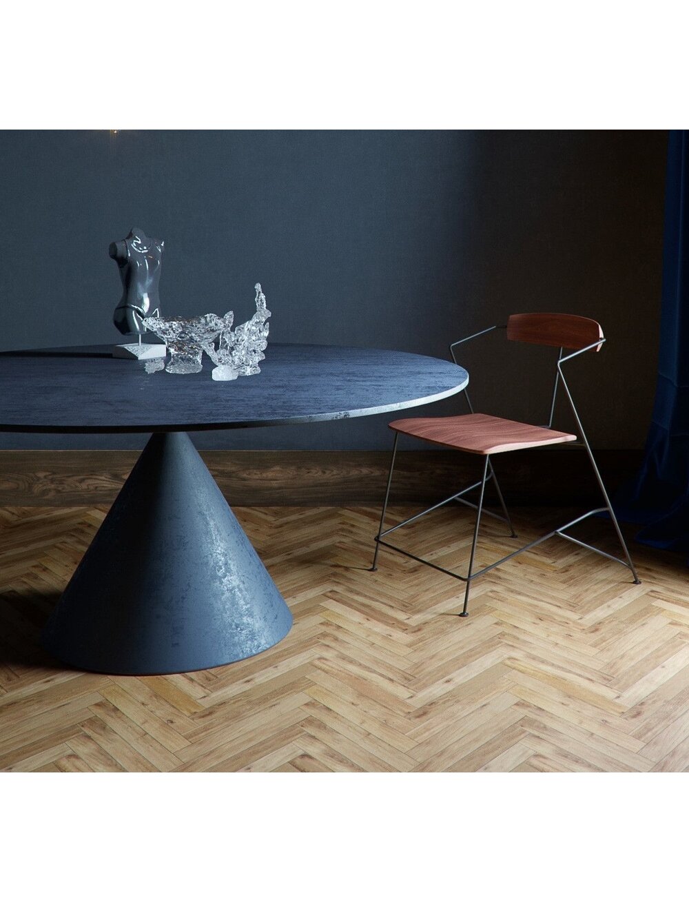 Основание стола выполнено из цельногнутого массива берёзы облицованное полимерными материалами и микро цементом. Текстура создаётся мастерами вручную. Доступны в круглом и овальном исполнении Цена за стол в размере 120 х 120 см.