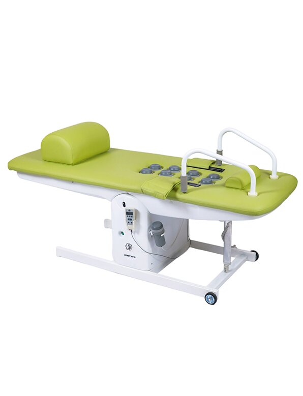 Стол массажный СТМ-РП предназначен для реабилитации позвоночника посредством массажа мышц спины и шеи в лечебных, спортивно-оздоровительных и гигиенических целях. При необходимости возможна вытяжка тела пациента во время массажа под собственным весом. Для этого стол имеет возможность изменения угла наклона до 30° с фиксацией в любом промежуточном положении. Такой метод вытяжки оптимален с точки зрения травмобезопасности и физиологичности. Габаритные размеры стола - 2000*650*730 мм. Масса - 97 кг. Количество массажных модулей - 9 штук.