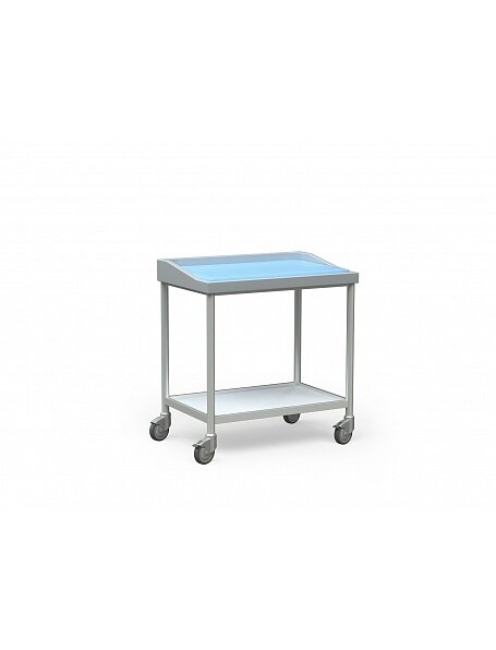 Стол медицинский для пеленания БТ-СП-90-К предназначен для использования в педиатрических и послеродовых отделениях медицинских учреждений. Стол можно устанавливать в кабинетах врачей-педиатров, в детских боксах, послеродовых отделениях, холлах и других помещениях, где необходимо производить уход за новорожденными. Изделие имеет полочку для хранения расходных материалов, предназначенных для ухода за младенцем. Каркас стола выполнен из профильной трубы и окрашен порошковой эмалью. Столешница изготовлена из термоформованного ABS-пластика серого цвета, материал выдерживает ежедневную гигиеническую обработку. Матрас выполнен из пенополиуретана с покрытием из высококачественной искусственной кожи, цвет может быть выбран заказчиком. Пеленальный стол установлен на колеса, что позволяет легко передвинуть стол из помещения в помещение. Габариты - 900*600*990 мм.