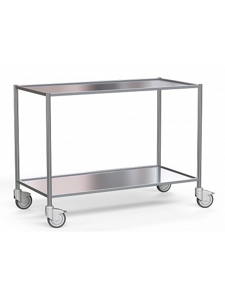 Стол медицинский для раскладки медицинского инструмента БТ-СНПк - профессиональное медицинское изделие. Данный тип мебели применяется для раскладки инструмента в операционных и процедурных кабинетах, на фармацевтических предприятиях, в пищевых блоках, "чистых" помещениях, а также в любых других комнатах с повышенной влажностью, с высокими требованиями к чистоте, в которых необходима постоянная гигиеническая обработка поверхностей мебели агрессивными дезинфицирующими веществами. Изделие установлено на 4 ножки из шлифованной нержавеющей трубы. Оно оснащено 4 колесами, диаметр каждого из них составляет 125 мм. Для удобства фиксации стола на нужном месте 2 колеса оборудованы системой торможения-блокировки. Столешницы с видимой толщиной 300 мм снабжены бортиками высотой 4 мм для предотвращения падения инструментов и прочих предметов во время перевозки. Под основной рабочей поверхностью изделия имеется дополнительная полка.