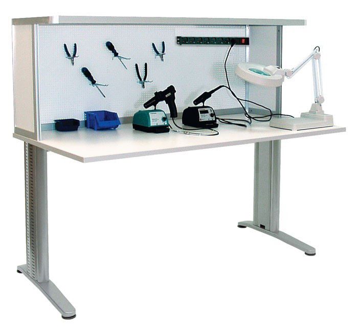 Стол монтажника радиоаппаратуры АРМ Каркас алюминиевый (цвет серый) Столешница ДСП (цвет белый) В комплект входит: Полка над столешницей 1500х500мм - 1шт. Перфорированная задняя стенка - 1шт. Крючки для крепления инструмента - 5шт. Люминесцентные светильники (20Вт. каждый) - 2шт. Блоки розеток - 2шт. Разъемы заземления. Поставляется в собранном виде. Упакован в стрейчпленку. Мы изготавливаем любую металлическую мебель, из черного, или цветного металла, по любым размерам, согласно вашему техническому заданию, чертежу, или эскизу от одной единицы. Высота: 1310мм Ширина: 1500мм Глубина: 800мм