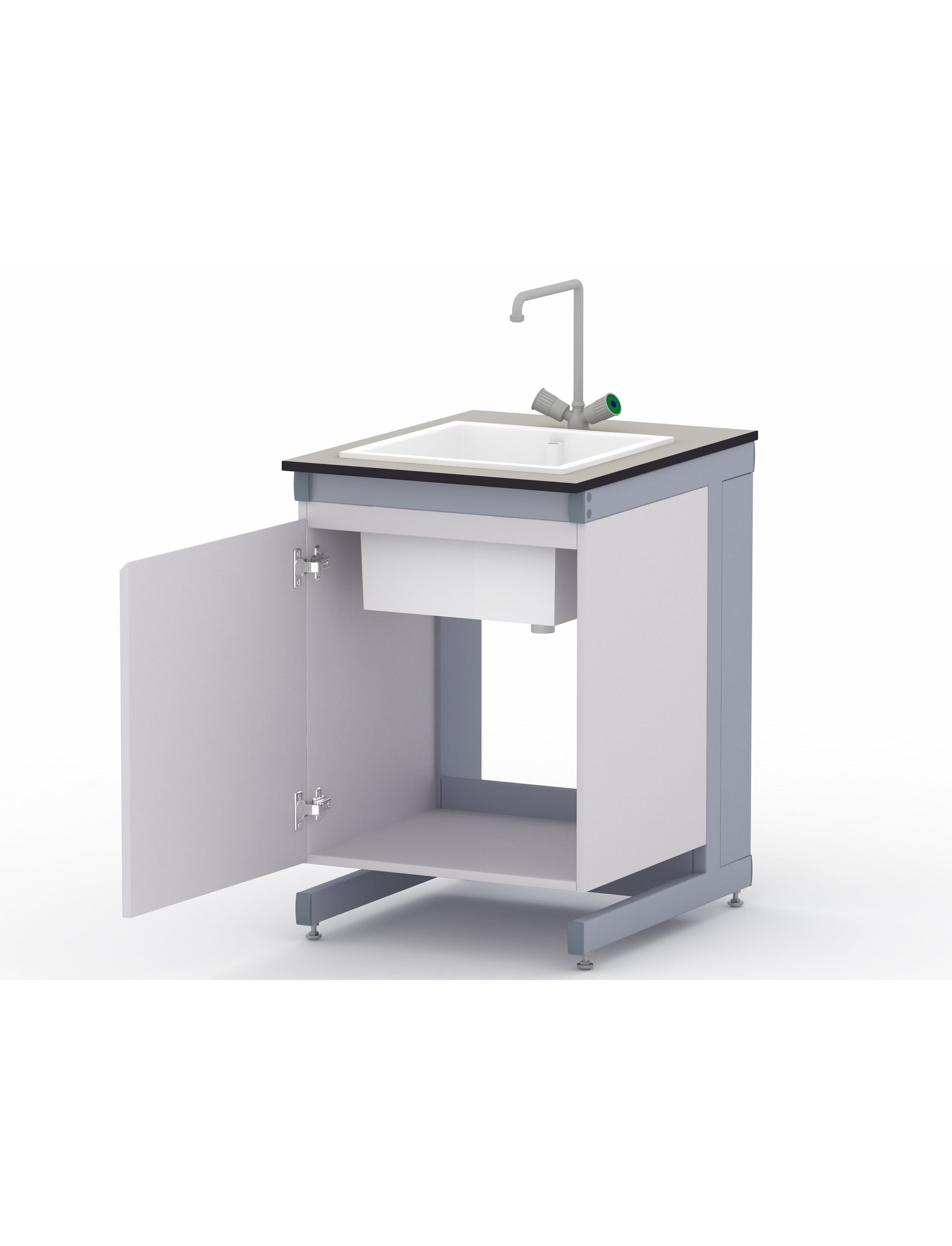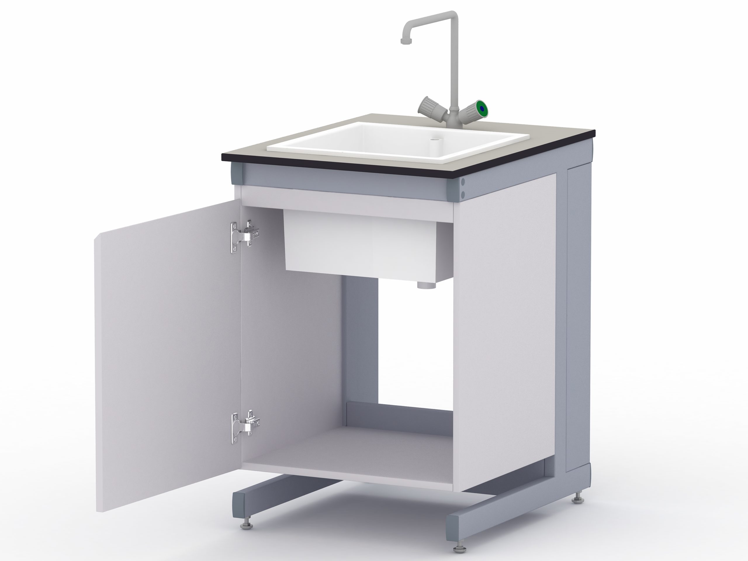 Стол-мойка лабораторная одинарная применяются для мытья посуды и инструментов, для доступа к воде и слива полученных в процессе работы растворов. Подвесная тумба служит для хранения материалов. Прочный каркас из стальных прямоугольных труб обеспечивает надежность конструкции. Двери со специальными петлями полного открывания 270° для удобства эксплуатации. Съемное дно в тумбе для удобства подвода коммуникаций с пола. Для компенсации неровностей пола предусмотрены регулируемые опоры. Материал раковины: полипропилен, полимерный композит, нержавеющая сталь, керамика. Раковина стандартно установлена по центру, возможно смещение влево или вправо. Длина - 600 мм., 900мм., 1200мм., 1500 мм. Глубина - 750 мм., 620 мм. Высота - 900 мм.