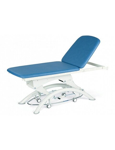Стол смотровой Lojer E2 предназначен для размещения в небольших процедурных, смотровых и врачебных кабинетах. Надежная двухсекционная конструкция оснащена бесшумным электродвигателем с низким уровнем вибрации. Отличительная особенность модели - регулировка высоты в пределах 45−92 см, позволяющая без применения специальных подъемных механизмов размещать пациентов с ограниченными функциональными возможностями и большой массой тела. Максимальная рабочая нагрузка смотрового стола Lojer составляет 210 кг. Двухсекционное ложе с покрытием из искусственной медицинской кожи SKAI имеет эргономичные сглаженные формы, позволяющие легко проводить санитарно-гигиеническую обработку. Регулировка высоты секций осуществляется при помощи пульта дистанционного управления. Диапазон регулировки спинной секции составляет 78°. Устойчивые выдвижные опоры смотрового процедурного стола оснащены резиновыми прокладками.