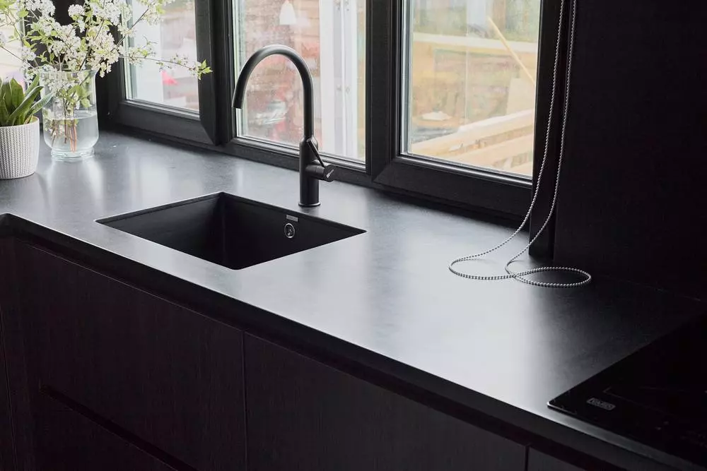 Столешница для кухни переходящая в подоконник из акрилового камня Grandex A-421 Coal Mine