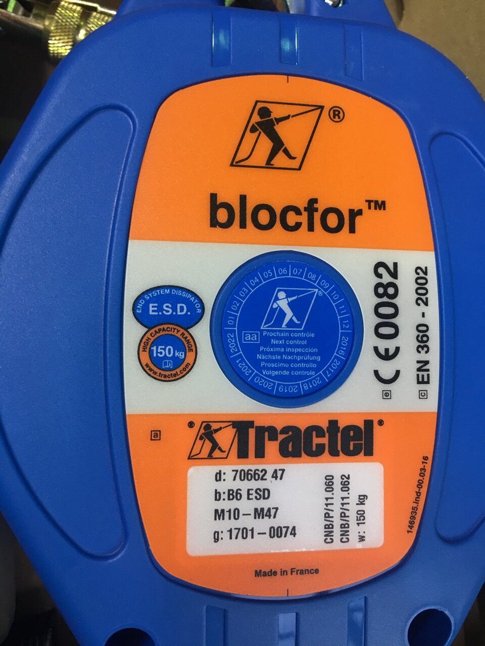 Страховочное устройство втягивающего типа BLOCFOR™ 6 ESD M10 M47 150KG