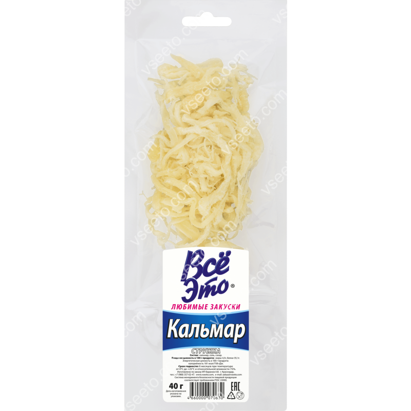 Стружка кальмара "Все Это Любимые Закуски" 40гр.