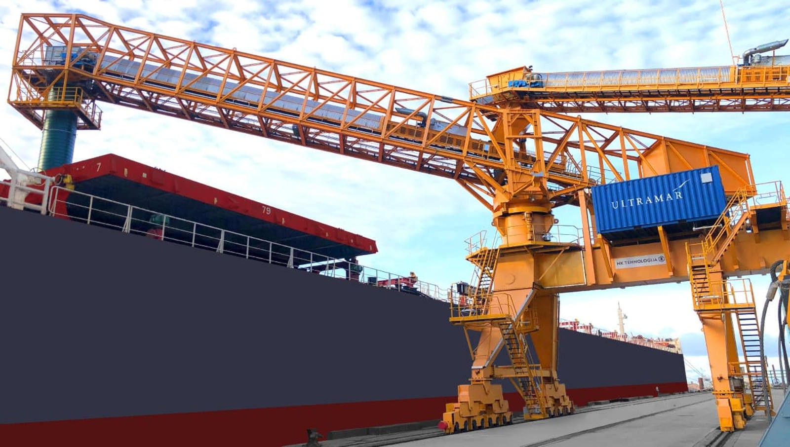 Рельсовая система состоит из двух параллельных рельсов, по которым движется погрузчик. Рельсы могут быть установлены на причале или на берегу, в зависимости от требований к погрузке. Погрузочное оборудование может включать в себя краны, вилочные погрузчики, магнитные захваты и другие устройства для подъема и перемещения грузов.