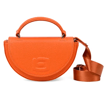 полукруглой формы из гладкой оранжевой кожи — стильный аксессуар маленького размера, который идеально дополнит ваш образ. Закрывается при помощи клапана с потайными магнитами, на задней стенке есть карман для мелких предметов. Внутри сумки — одно отделение, на подкладке — карман для хранения важных мелочей.