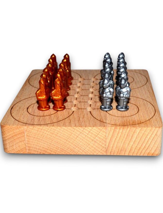Сурракарт - это древняя индонезийская настольная игра для двоих, разновидность шашек, которая отличается необычным полем с замкнутыми петлями (неевклидовой геометрией), что делает её уникальной. Её цель - сбить все шарики противника, используя движение по линиям и петлям, развивая при этом тактику и стратегическое мышление. В данной игре понятия "право", "лево", "вперед" и "назад" не имеют смысла.