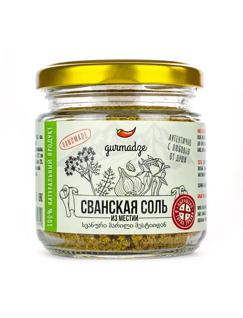 Сванская соль - это соль со специями, история которой начинается в Сванетии - высокогорном районе в Грузии. Cпеции, входящие в ее состав, собраны именно там.